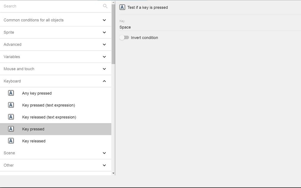 • Click Keyboard > Key pressed.